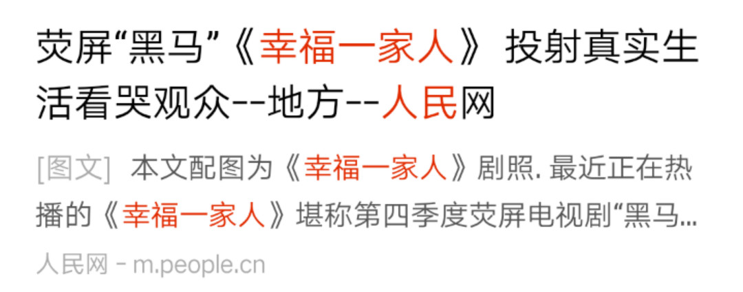 正當大(dà)家(jiā)以為(wèi)家(jiā)庭倫理₩γ≠✘(lǐ)劇(jù)已經走向寒冬時(shí),11月(yuè)份于北(běi)京衛視(shì)開(α≈kāi)播的(de)《幸福一(yī)家(jiā)人(≥↔φ$rén)》卻以持續領跑的(de)收視(shì)率讓家€(jiā)庭題材劇(jù)再度迎來(lái)了εε(le)春天。據#新浪電(diàn)視(shì)勢力榜#統計(jì),《幸福一(yī)家(jiā)人(rén)》CSM52城(chéng)日(rì)均收視(shì)率連續四周第一(y✔ī),牢牢坐(zuò)穩了(le)第四季度收λ$視(shì)冠軍的(de)寶座。