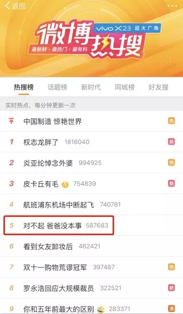 “對(duì)不(bù)起 爸(bà)爸(bà)沒本事(shì>© )”微(wēi)博熱(rè)搜截圖