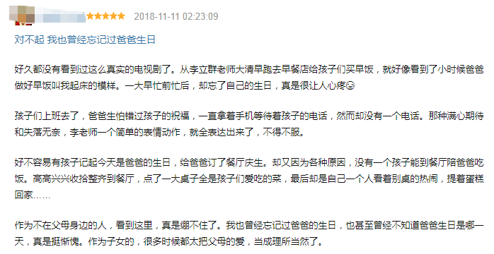 從(cóng)房(fáng)永福的(de)心願清單其®&實也(yě)可(kě)以看(kàn)出,老(lǎo)父親并不(bù)是(sh€Ωì)真的(de)要(yào)“告”幾個(gè)兒(ér)女(nǚ),÷↑ ¥隻是(shì)想通(tōng)過這(zhè)樣的(®©♣αde)方式來(lái)獲得(de)兒(ér) ≤女(nǚ)更多(duō)的(de)關心罷了(le)。→ λ這(zhè)一(yī)點觀衆們看(kàn)到(dào)這(zh→÷↕>è)裡(lǐ)就(jiù)明(míng)白(bái)了(le),可♥'ε(kě)惜房(fáng)家(jiā)三姐(jiě)弟(dì)卻到(₹™ dào)父親生(shēng)命的(de)最後幾個(gè)月(yδ♣uè)才明(míng)白(bái)。這(zhè)種戲劇(jù)化(hu ↓à)的(de)演繹其實也(yě)為(wèi)觀衆敲了(le)一(yī)記警鐘(©←zhōng),珍惜眼前人(rén),切莫等到(dào)“子(zǐ)∞®欲養而親不(bù)待”的(de)時(shí)候才追悔莫及。