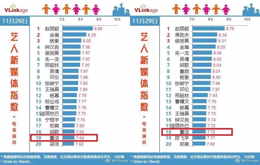 1)Vlinkage-藝人(rén)新媒體(tǐ)指數(shù): ↕←©女(nǚ)主董潔二度進入TOP20