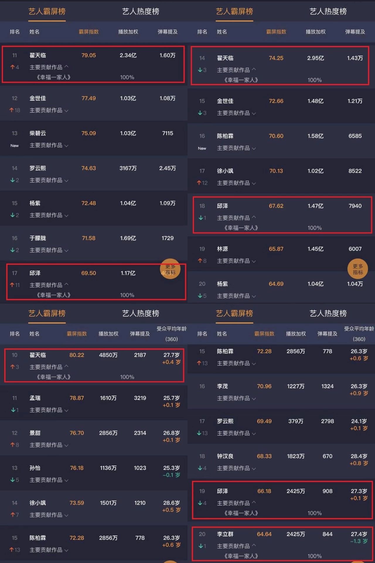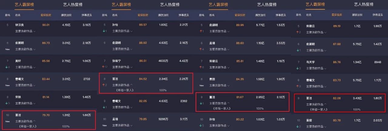 在雲合數(shù)據藝人(rén)霸屏榜上(shàng),φ£董潔、翟天臨、李立群、邱澤一(yī)衆主演多(duō)次跻身(s₩✘λhēn)周榜TOP20,董潔連續四周穩居在TOP10行(xíng)列之中,《幸福一(yī)家(jiā)人(rén)》均為(w±₩∞èi)100%的(de)貢獻率。