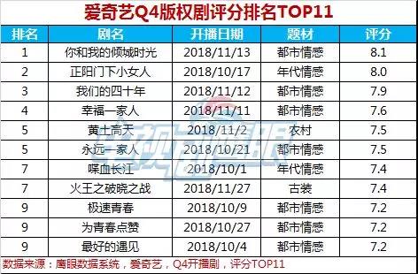 3)愛(ài)奇藝:跻身(shēn)平台2018Q4版權劇(jù)評分(fēn)TOP5