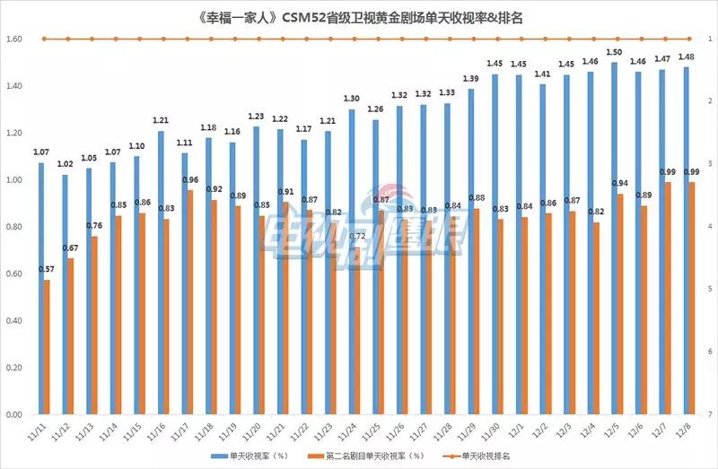 從(cóng)尼爾森(sēn)-全國(guó)網收視(shì)來(lái)看(kàn),《幸福φ↓一(yī)家(jiā)人(rén)》開(kāi)播僅三♠®™★日(rì)便創下(xià)單天收視(shì)2.76%的(de)小(xiǎo)高(gāo)潮,随後更是(shì)借“ ÷∞♣高(gāo)開(kāi)”之勢持續“高(gāo)走”,共計(jì)23天收視(shì)破2%,其中9天突破2.5%。12月(yuè)1日(rì)後,《幸福一(yī)家(jiā)人(rén)₽£》單天收視(shì)不(bù)僅持續達到(dào)2.3%以上(shàng),更是(shì)蟬聯央衛視(shì)晚間(jiān)劇(jù)場(chǎng)收視(shì)冠 ± 軍,穩固霸主地(dì)位。