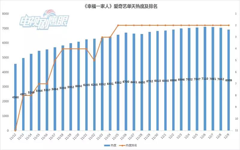 今年(nián)9月(yuè),愛(ài)奇藝宣布正式關閉顯示前台網播量,以綜合用(yòng↔•β)戶討(tǎo)論度、互動量、多(duō)維度播放(fàng)類指标的(de)&↔α™內(nèi)容熱(rè)度作(zuò)為(wèi)代替網播量的(de)新指标 $。《幸福一(yī)家(jiā)人(rén)》在愛(ài)奇藝的(de)熱(r•↔λ÷è)度穩步增長(cháng),最高(gāo)熱(rè)度♣→≈π達7110,較開(kāi)播日(rì)實現(xiàn)55.6%的(de)漲幅。該劇(jù)熱(rè)度名次也(yě)一¥£(yī)路(lù)長(cháng)驅,播出次©™≤日(rì)便跻身(shēn)TOP10,至11月(yuè)25日(rì)起便穩居在亞軍席位,較開(kāi)播日(rì)上(shàngδ¥∞♠)升9個(gè)名次。